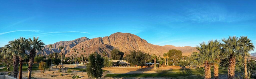 Living room is flanked with floor to celiing east and west facing windows. This view is looking west at Indian Head mountain and the golf course.